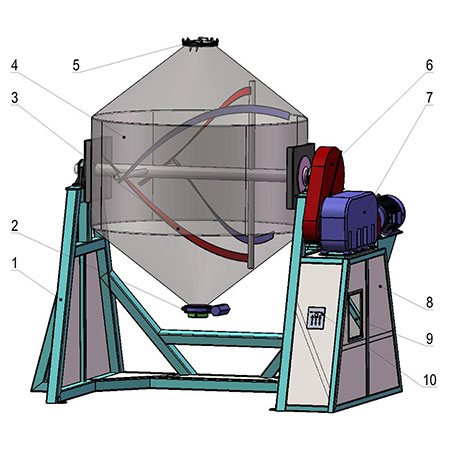SZG雙錐回轉真空干燥機為雙錐形的回轉罐體;罐內在真空狀態下;向夾套內通人蒸汽或熱水進行加熱;熱量通過罐體內壁與濕物料接觸。濕物料吸熱后蒸發的水氣;通過真空泵經真空排氣管被抽走。由于罐體內處于真空狀態;且罐體的回轉使物料不斷的上下、內外翻動;故加快了物料的干燥速度;提高干燥效率;達到均勻干燥的目的。
